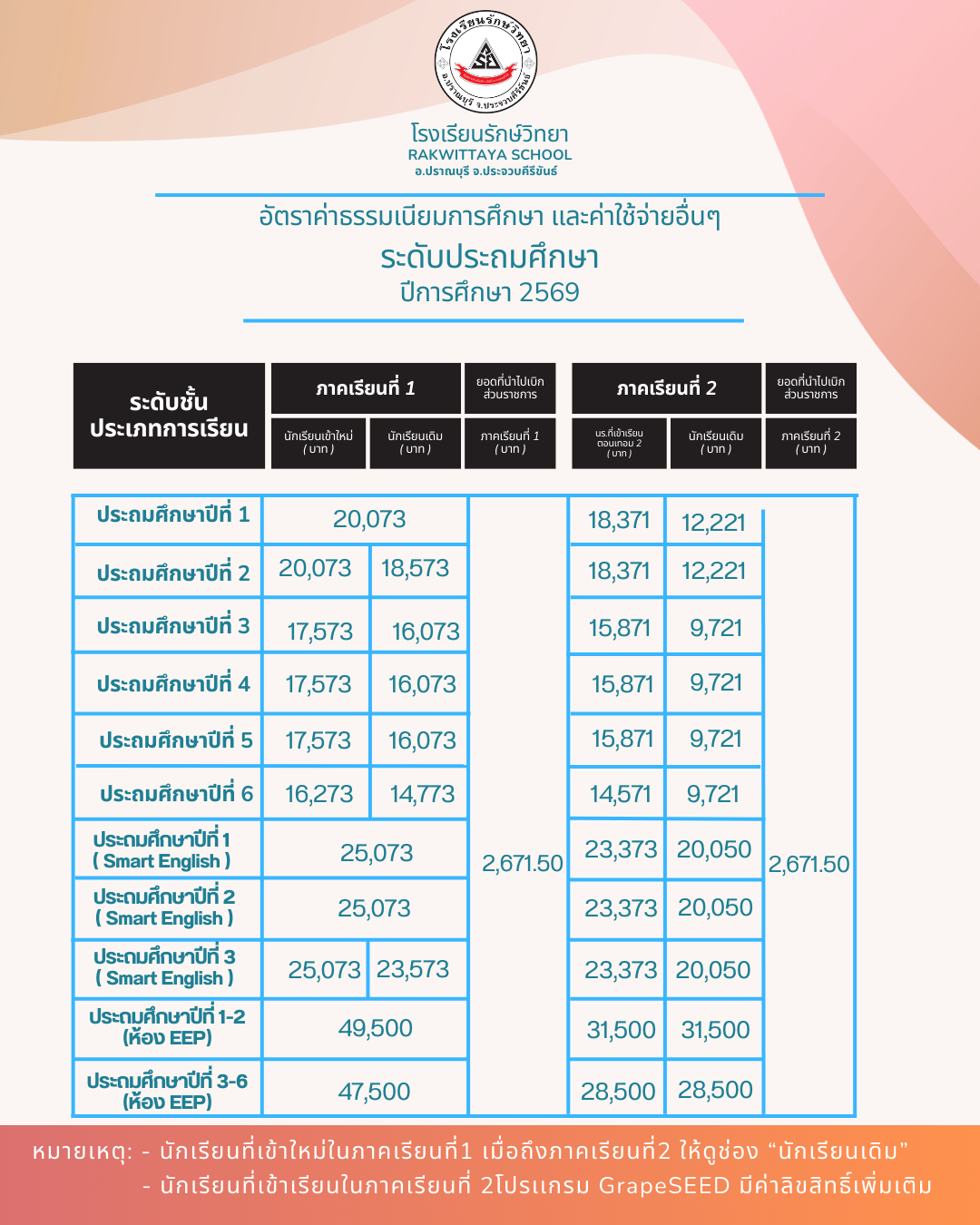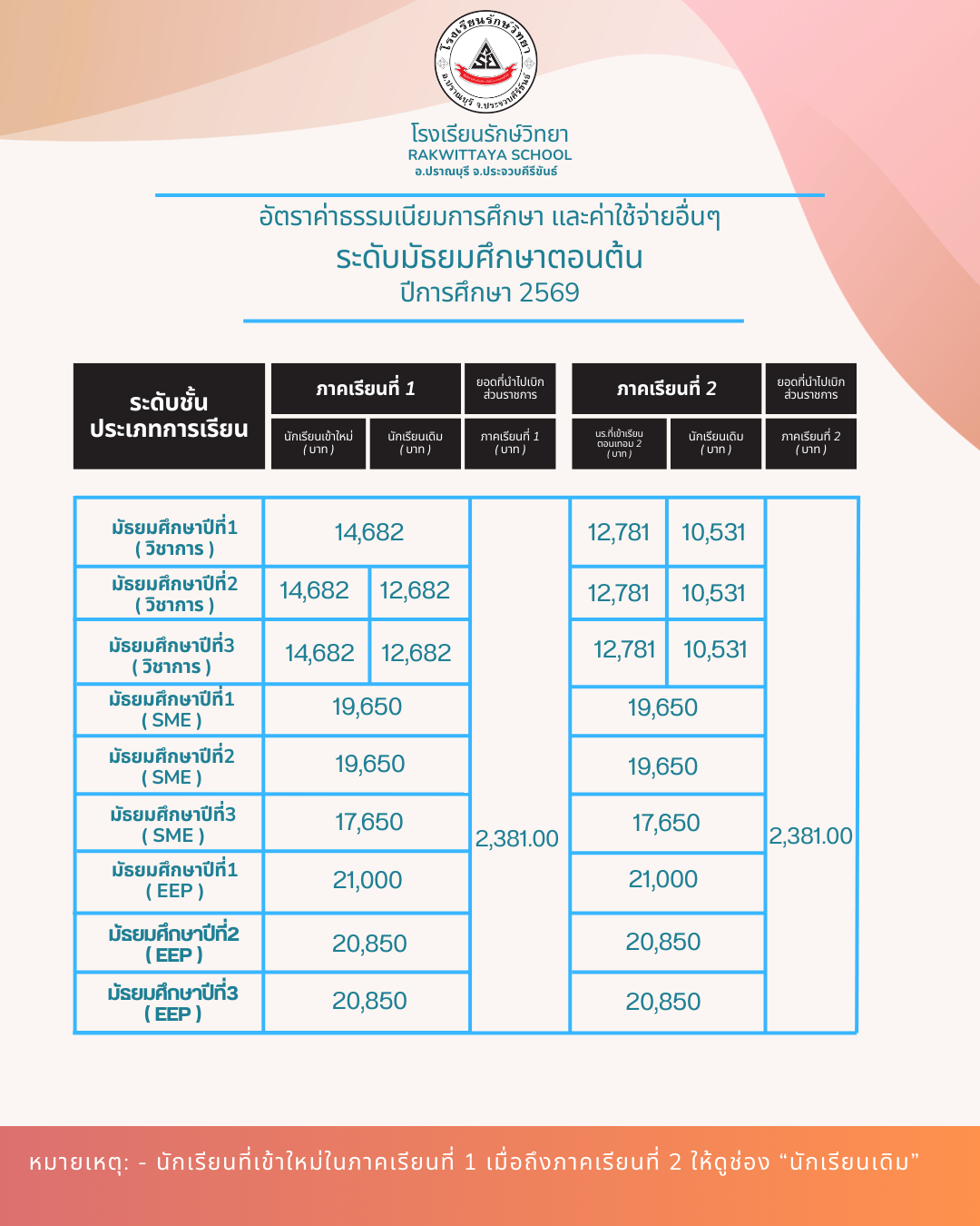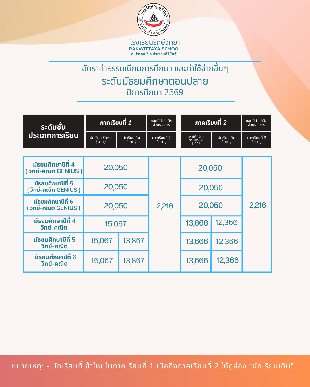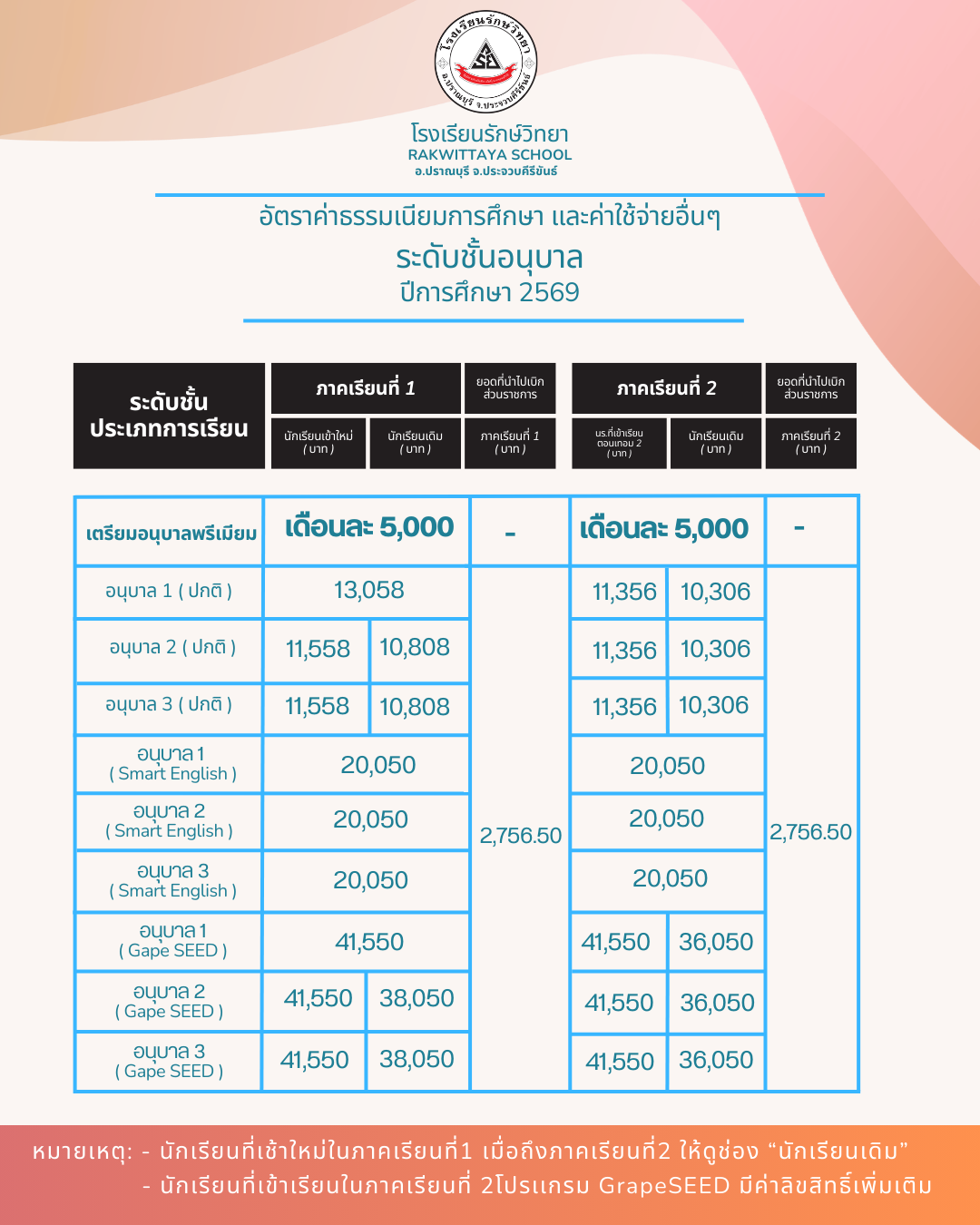 อัตราค่าเล่าเรียนประจำปีการศึกษา 2569